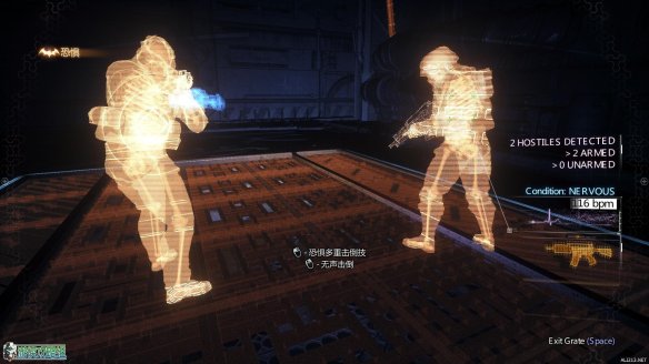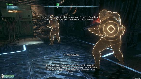 这时地图上会出现一个更大的标示字样,顺着标示来到一个房间内,这里可以使用多重击倒技来对敌人展开奇袭。