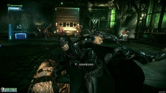 对付房间里的敌人,此时因为蝙蝠车在场,还可以利用空格加鼠标左键来施展蝙蝠车援护击倒,演出效果十分华丽。