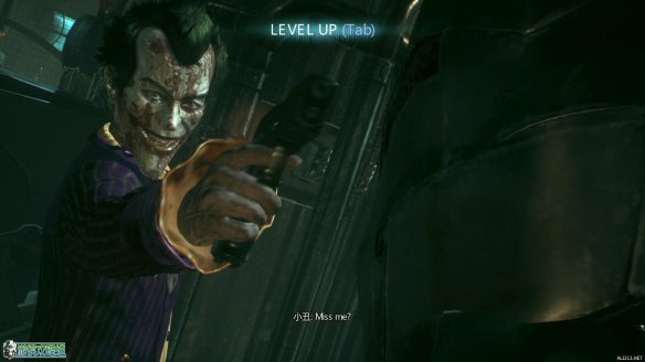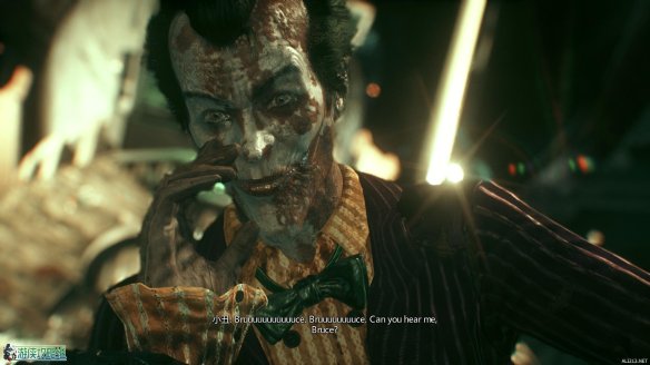 场景回顾结束,原来蝙蝠侠此时已经感染了小丑的疯狂之血,因此他看到了小丑出现在自己的身边,不过这个小丑只是一个幻象而已。