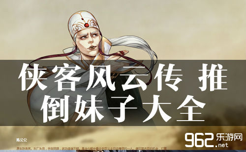 [乐游网导读]今天小编给大家带来侠客风云传女子攻略方法,想知道怎么去推倒妹子的,跟随小编的脚步,一起来看看吧,哈哈非常不错哦。