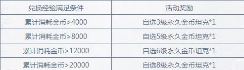 活动②、活动期间消耗金币兑换经验达以下条件即可获得相应奖励;