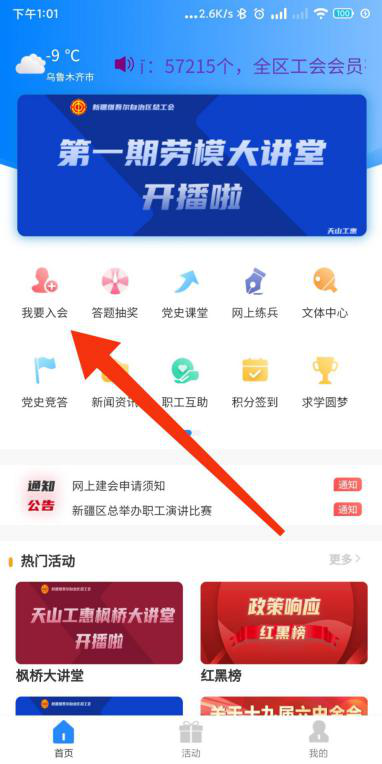 【由“天山工惠”首页进入“入会转会”页申请入会】
