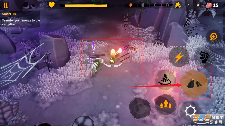 3、攻击按钮可以攻击怪物,遇到障碍的时候,也可以使用跳跃键跳过