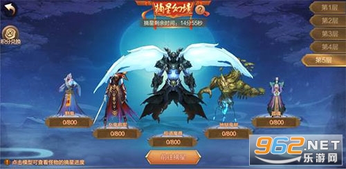 帮主和左右护法可以在npc帮会长老处开启摘星幻境层数。层数越高花销越大、怪物的实力也越强,但收获也更加诱人。可谓风险与机遇并存