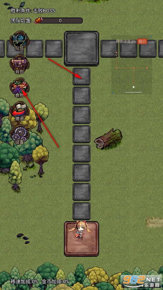 再次点击格子即可开始移动,我们能在左上方的食物一栏解决我们在冒险中的饥饿值。