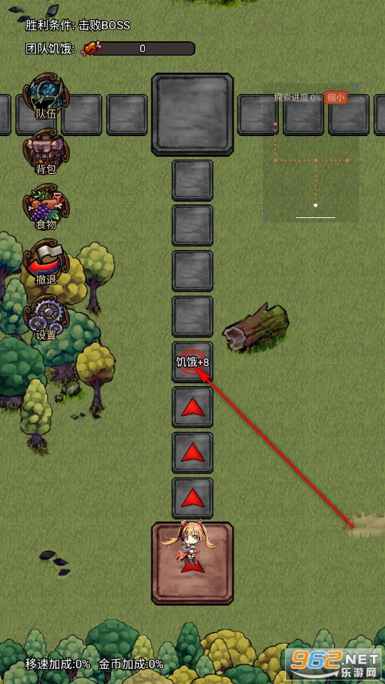 我们在冒险时需要选择走动的格子,走动格子会增加团队的饥饿值。