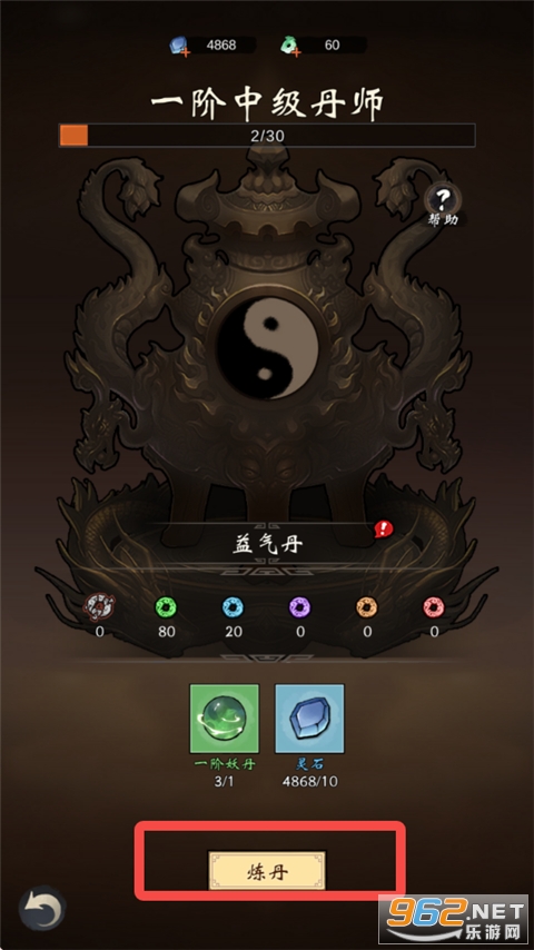 炼丹可获得炼丹心得,用于提升丹师等级,炼制丹药等阶越高、品质越好,炼丹心得越多,提高丹师等级,可以提升高品质丹药出现的基础概率百分比。