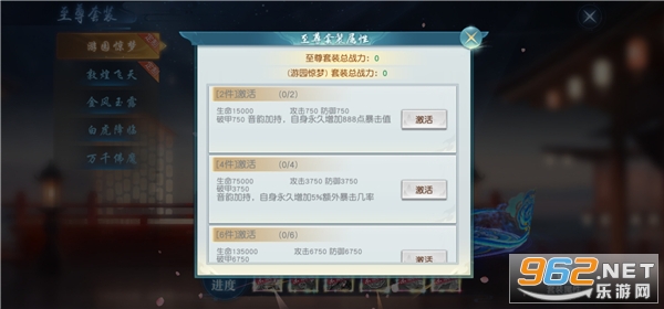 激活套装可不仅增加永久暴击值,还能提升生命、破甲、攻击等属性。