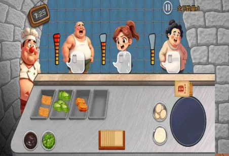 2、模拟经营玩法:玩家扮演餐厅老板或服务员,负责日常运营,如摊饼、放置食材、服务客户等,提升技能与管理能力,感受成长乐趣。