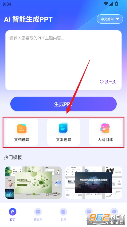2、也可以根据需求点击下方文档创建、文本创建、大纲创建