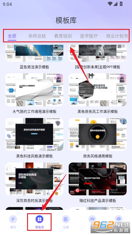 3、模板库里面有格式模板,包括年终总结、教育培训、医学医疗、商业计划书等等你