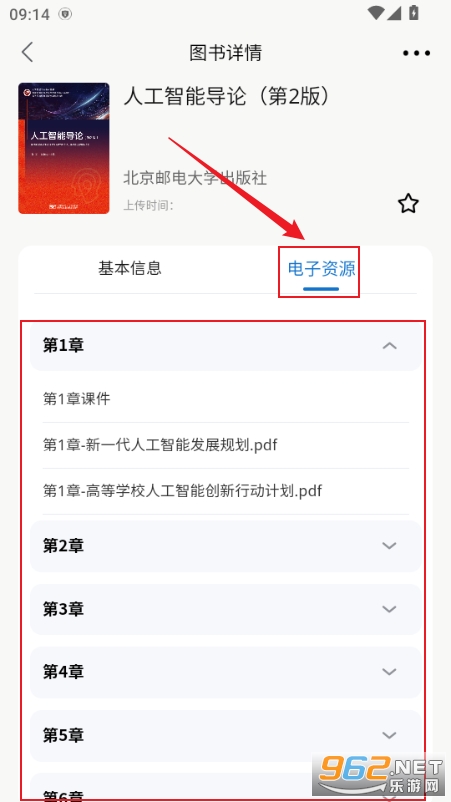 3、点击教材,选择电子资源,就能看到每个课程的课件及PDF文件了