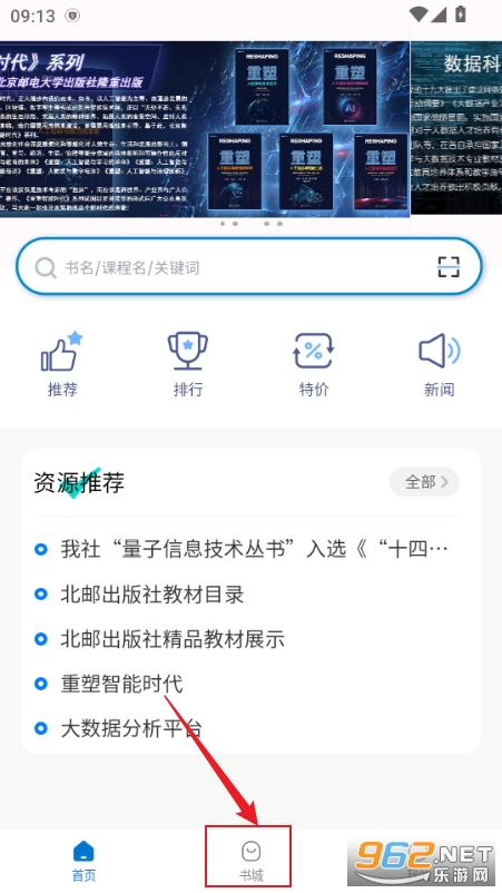 1、进入软件后,点击书城