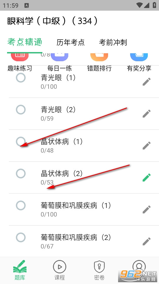 《眼科学中级》是一款眼科中级医学考试的备考学习软件,软件页面操作十分简单,收录了有关眼科的大量考点以及历年眼科医学考试的真题题库,用户可以根据自己的需求有选择地进行对应的学习,同时软件还支持用户进行趣味学习,能够通过趣味学习将知识点记在心里,巩固自身的学习知识点。