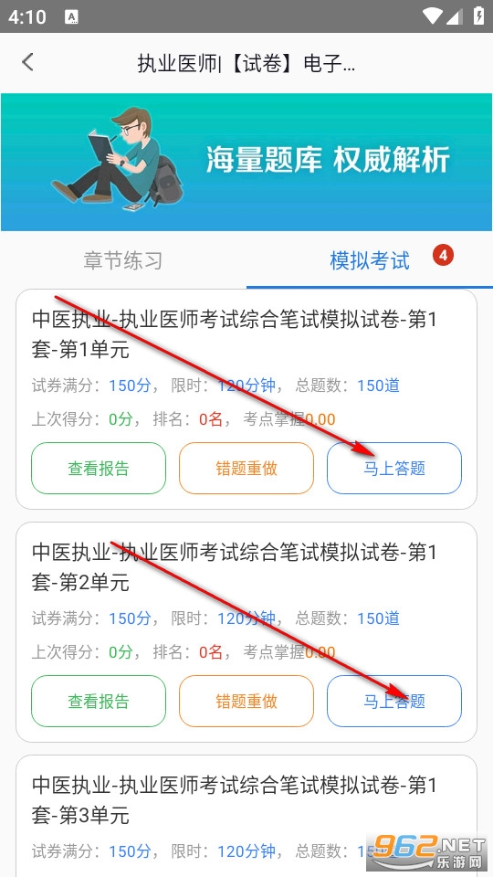 在模拟考试中选择我们需要练习的一套模拟考试试卷点击开始答题。