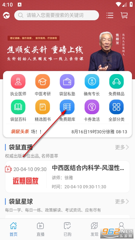 我们点击软件进入首页,点击免费题库。