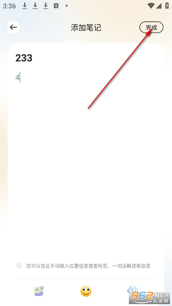 编辑好笔记信息后点击右上角完成。