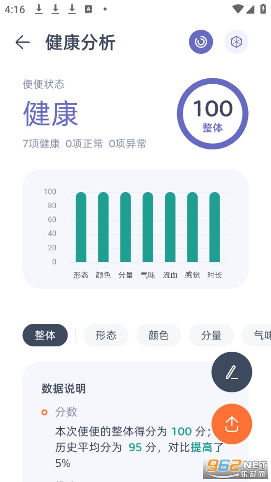 提供了多种多样的便便健康数据图表,能够利用多种数据图进行健康分析;
