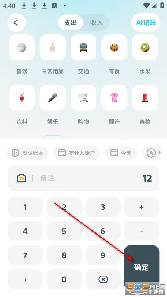 输入金额记账后点击确定。
