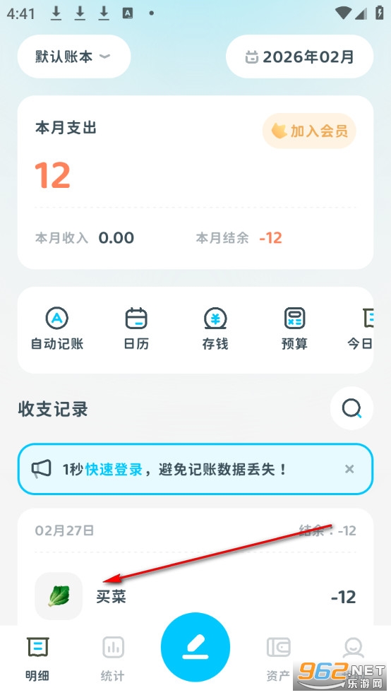 查看收支记录已添加。