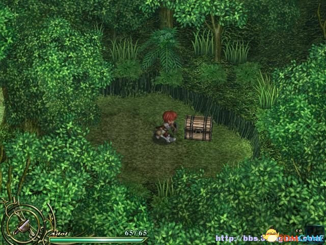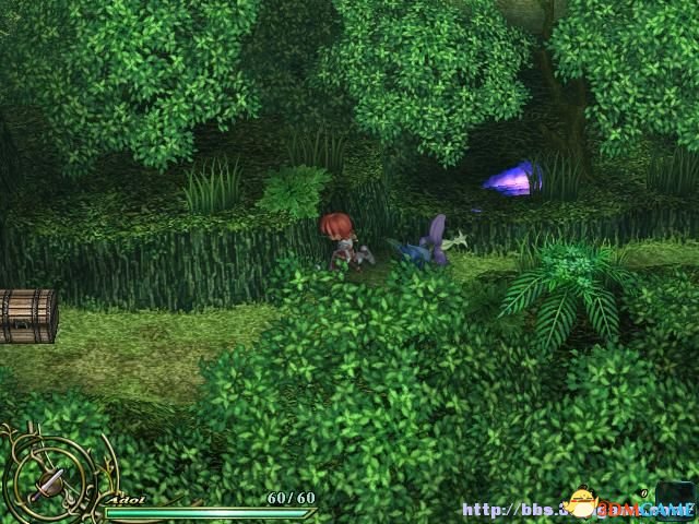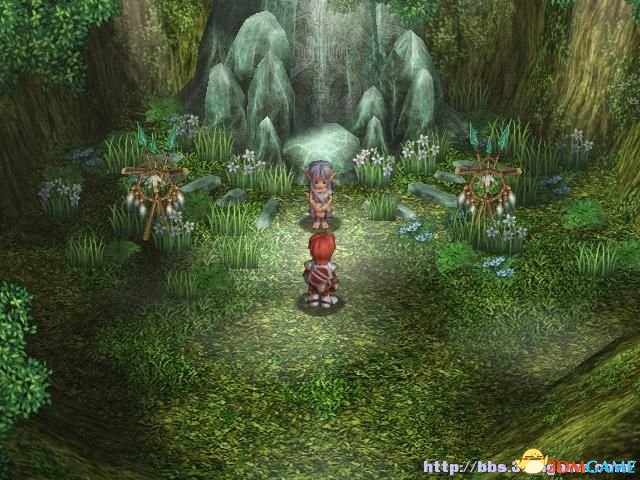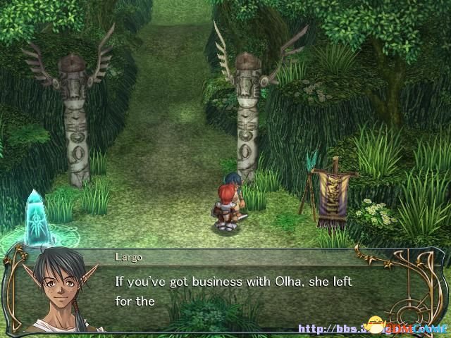 在森林进入村庄的路口左侧可以发现一颗水晶石的石碑,这颗精灵石碑可以供亚特鲁保存游戏,以及恢复其血量。