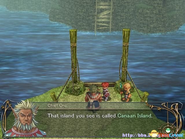 村长对亚特鲁还是保持着警戒之心,但是离开村庄的吊桥出了一点问题,村庄对岸的岛屿叫作迦南岛,在那里亚特鲁会遇见自己的同伴。可是目前吊桥断裂了,而且从绳索断裂的迹象来看是有人蓄意为之,所以亚特鲁就得继续逗留于此地。