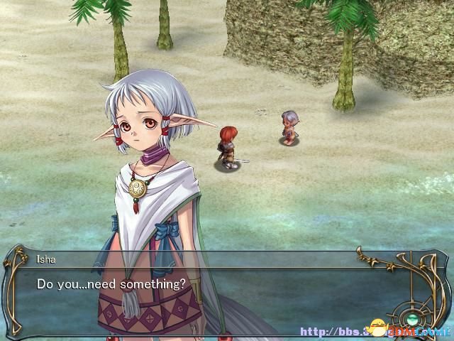 剧情:Rehda的村长奥多(奥露哈的叔叔)对于身披装甲的伊勒苏斯人战士表示了疑虑,对于奥露哈来说,救人一命胜造七级浮屠,但村子里的人近日对此有不满的情绪。作为精灵公主,奥多认为奥露哈必须要注重自己的身份地位,以免令到事件往更糟糕的方向发展。