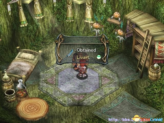 击败迷失之龙返回到Rehda村庄的大树内,此时不能够在不佩戴武器的状态下外出村庄,所以先前往村子大树左侧的房间与村庄见面,他会问亚特鲁一个问题,“你会选择那条小径前往迦南岛吗?”,回到“是与否”,随后村长就会赠予一把风剑“利瓦特”(1/1武器)。