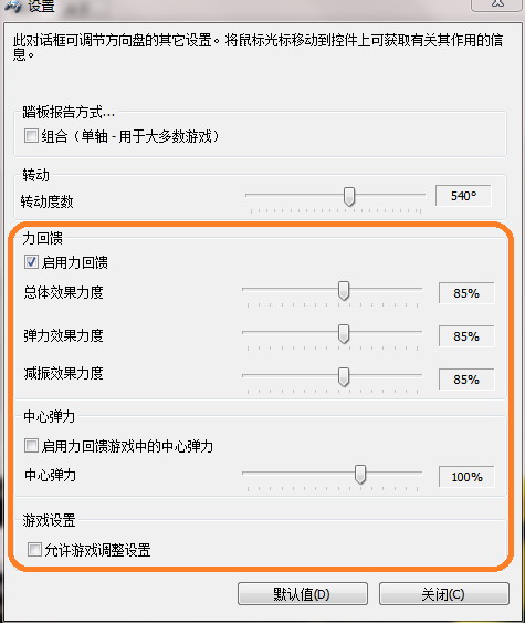 进入极品飞车15,想调节一下它的细腻力反馈设置,调整了半天,终于得出这样一个设置方案: