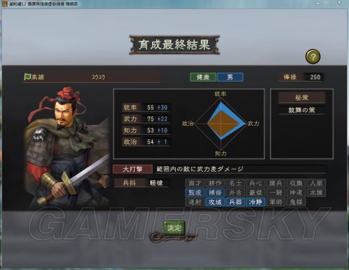 所以第一阶段练完后属性统率 57 武力 88 知力 63 政治 55(统加了2点武力加了13点,知政无视)