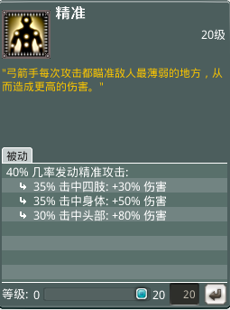 必满!理由?加射程加暴击,加射程配合百步穿杨,加暴击配合聚精会神,完美的天赋。推荐第二或第三个点满。